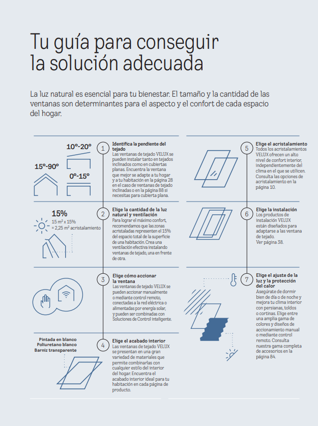 Las ventanas de tejado VELUX están diseñadas para transformar espacios bajo cubierta en habitaciónes luminosas, confortables y eficientes. Gracias a su diseño específico para cubiertas inclinadas, permiten aprovechar mejor la luz natural, mejorar la ventilación y optimizar el aislamiento térmico durante todo el año.